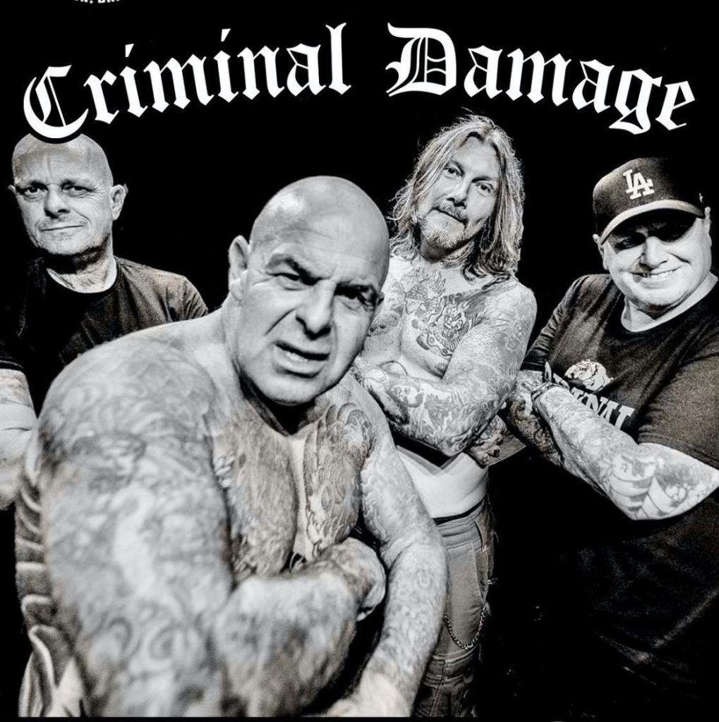 CRIMINAL DAMAGE – Brighton and Hove’s own Criminal Damage formed in the UK in 1982. They played SKUNX, London, and supported The Partisans and UK Subs. Bad habits, a severed hand and prison led to the band taking 40 years off. Reformed and rebooted playing punk fucking rock. Oi Oi!