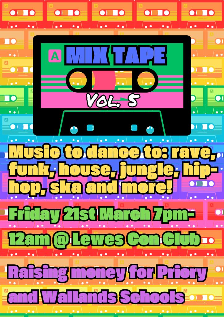 We are back with the 5th instalment of Mix Tape – A joyful night of beats and dancing, raising money for Lewes schools. To support Priory book your tickets here https://go.rallyup.com/mixtape5/ and for Wallands it’s https://fows.charityhive.co.uk/tickets/20/mix-tape-volume-5