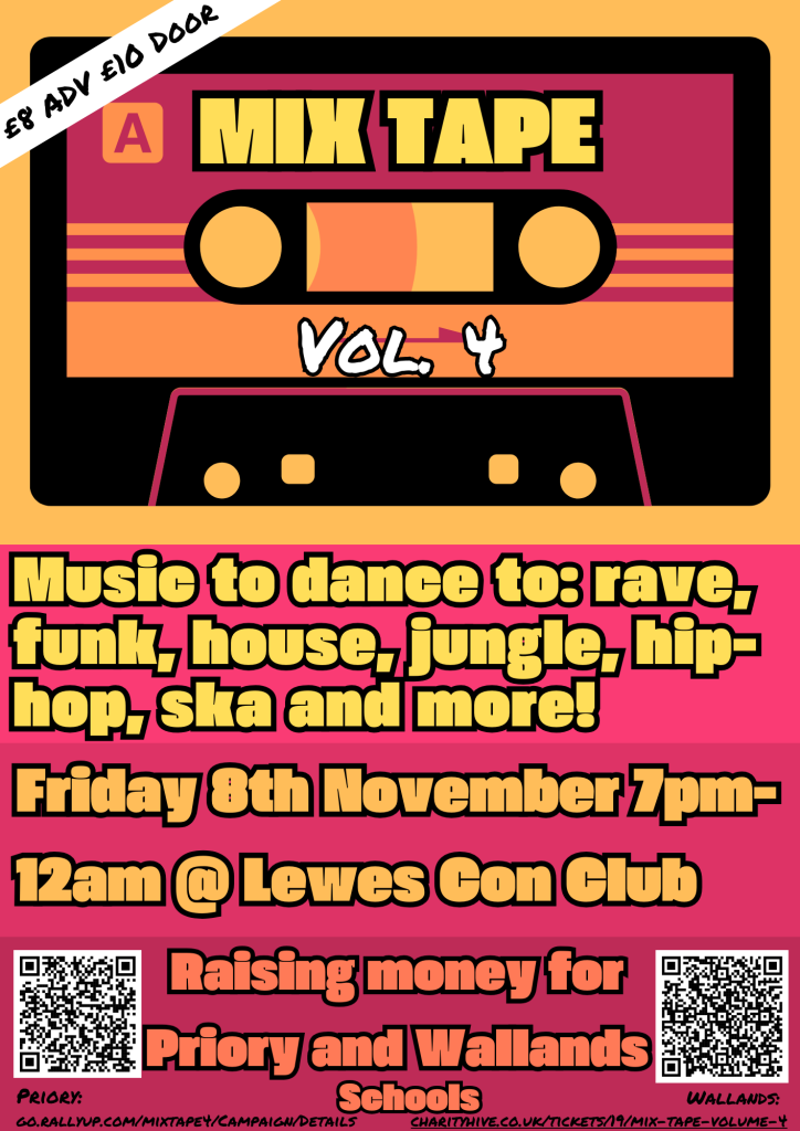 We are back with another Mix Tape following two sell-outs last year. We created this night because we love music from lots of genres, with big beats you love to dance to. All the money raised goes to Wallands and Priory Schools.