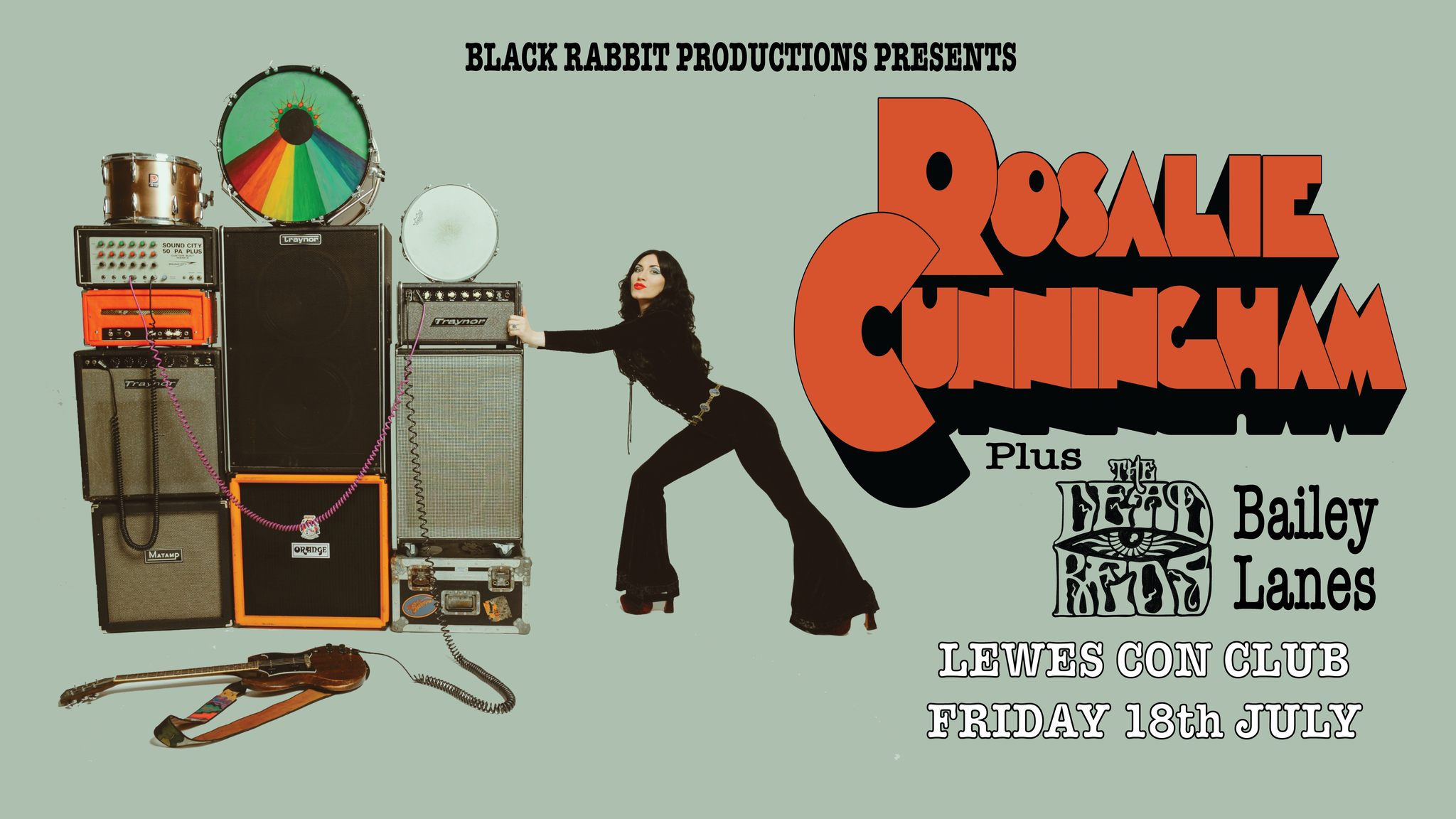 With her bombastic 5-piece live band, multiple award-winning singer, songwriter and multi-instrumentalist Rosalie Cunningham will be performing her acclaimed third album To Shoot Another Day along with other choice cuts from her back catalogue and Purson days.