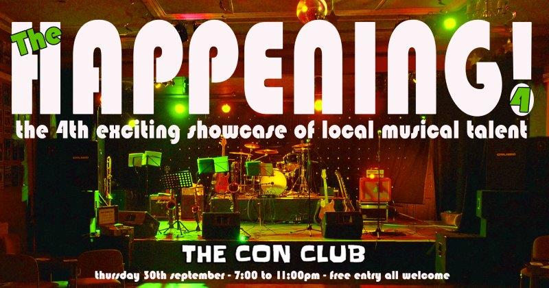 The Happening 4 – Multiple acts with live music from 7:30pm until 11:00pm. Bar from 5:00pm, doors and DJ from 7:00pm. Free entry and all welcome.