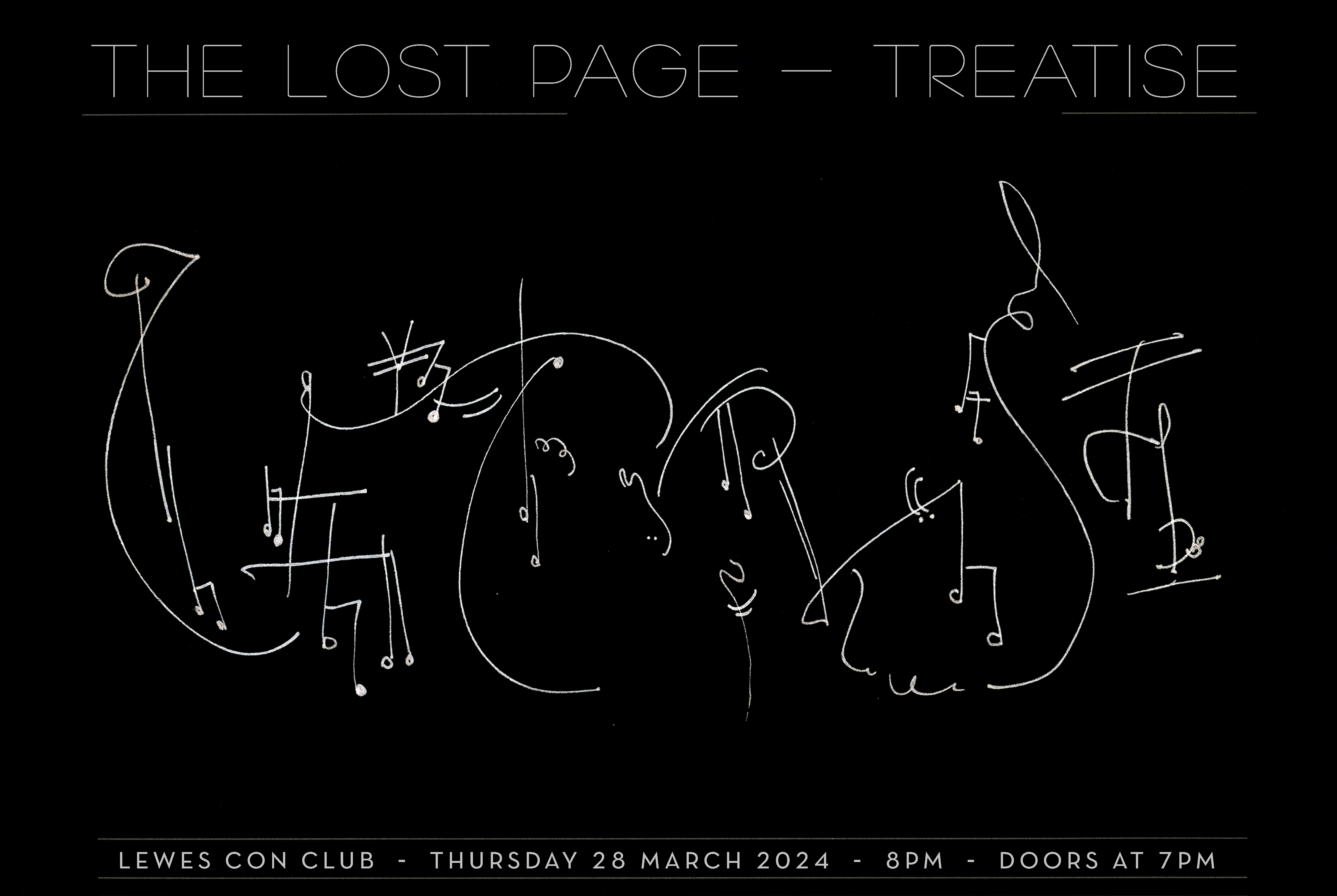 In 1967, Cornelius Cardew finished the longest graphic score in existence — TREATISE. It has 193 pages. Except it used to have 194. The lost page, a.k.a. The Bunny Page was known to be in the possession of Geno (Foreman), and later of Eno (Brian). Last year, in Japan, it was found again. We brought it back — to be played for the first time in history.